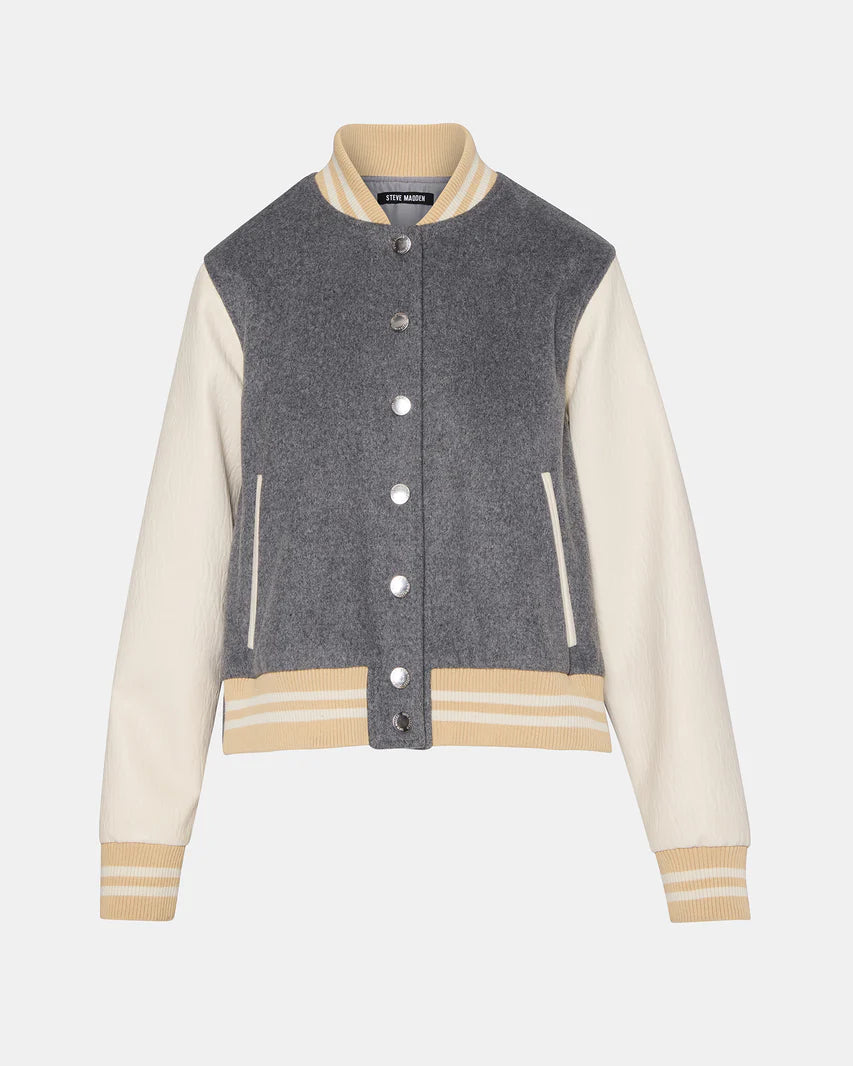 - Long-sleeved varsity jacket
